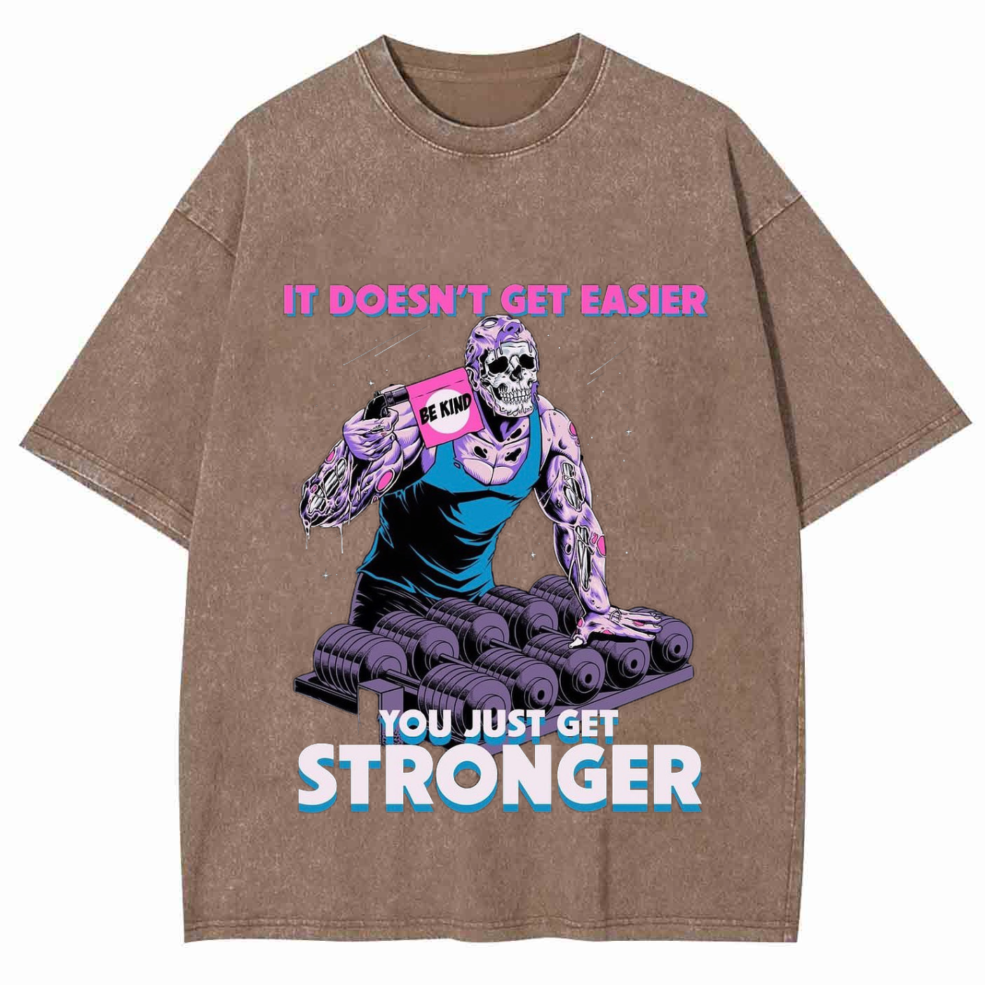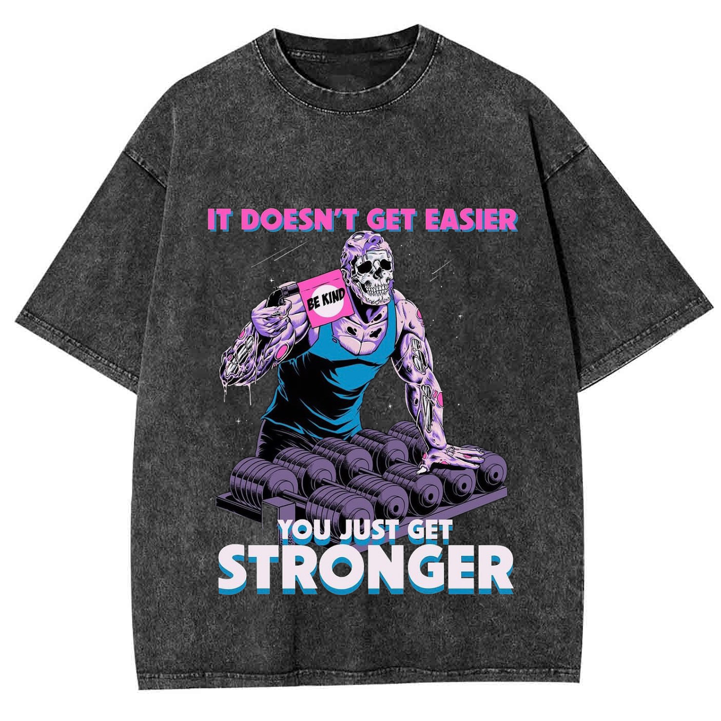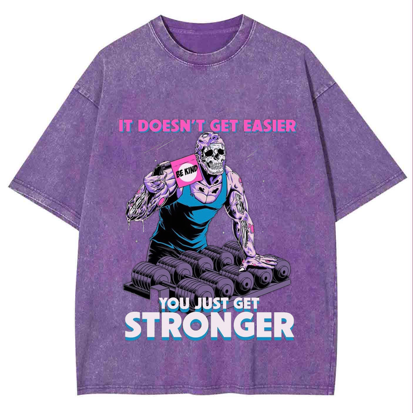 IT DOESN'T GET EASIER YOU JUST GET STRONGER Unisex Washed Crew Neck Short Sleeve T-Shirt