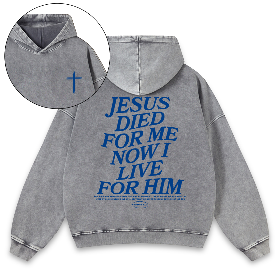 Jesus Died For Me Now I Live For Him Chrsitian Washed Vintage Hoodie