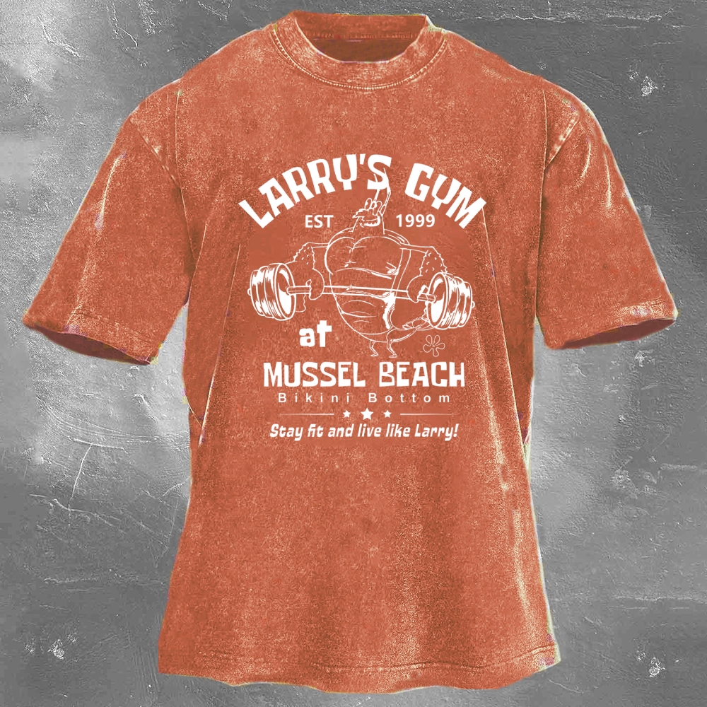 Larry's Gym Printed Washed Retro Casual T-Shirt