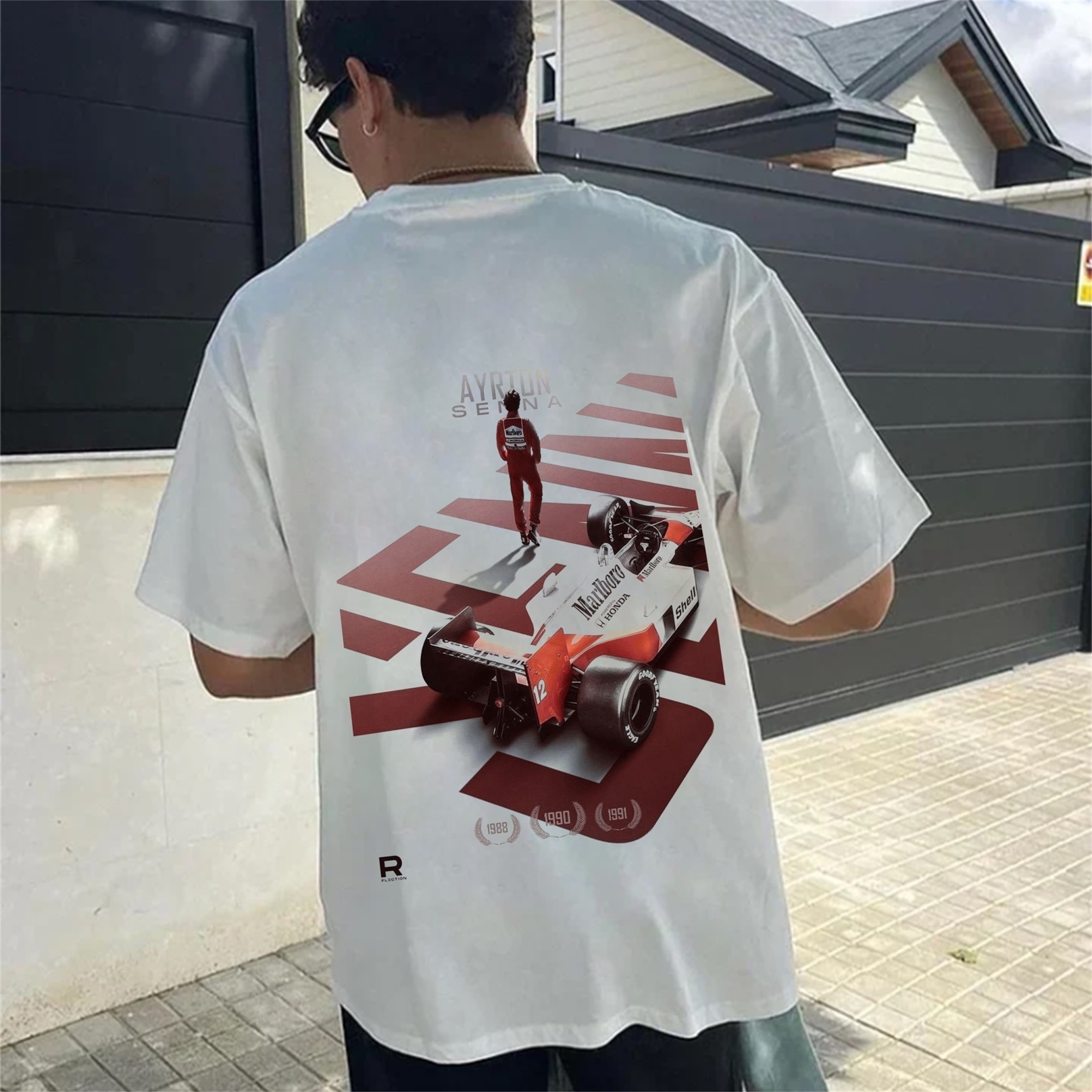 Legendary Racing Driver Aryton Senna Street Print Cotton T-Shirt 02