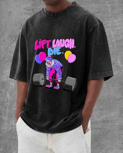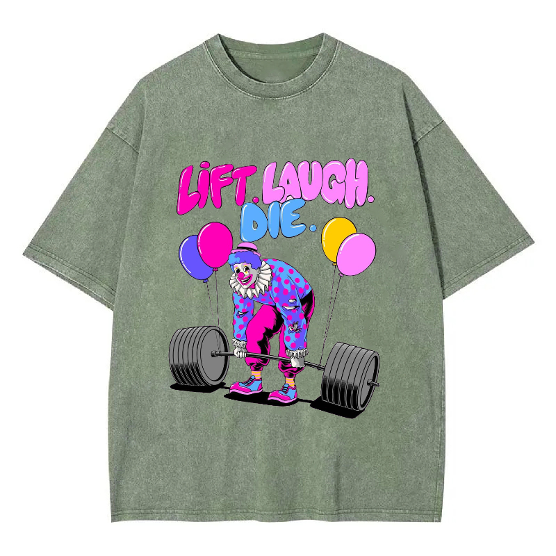 LIFT LAUGH DIE Unisex Washed Crew Neck Short Sleeve T-Shirt