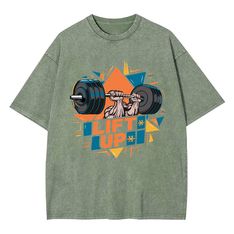 LIFT UP Unisex Washed Crew Neck Short Sleeve T-Shirt