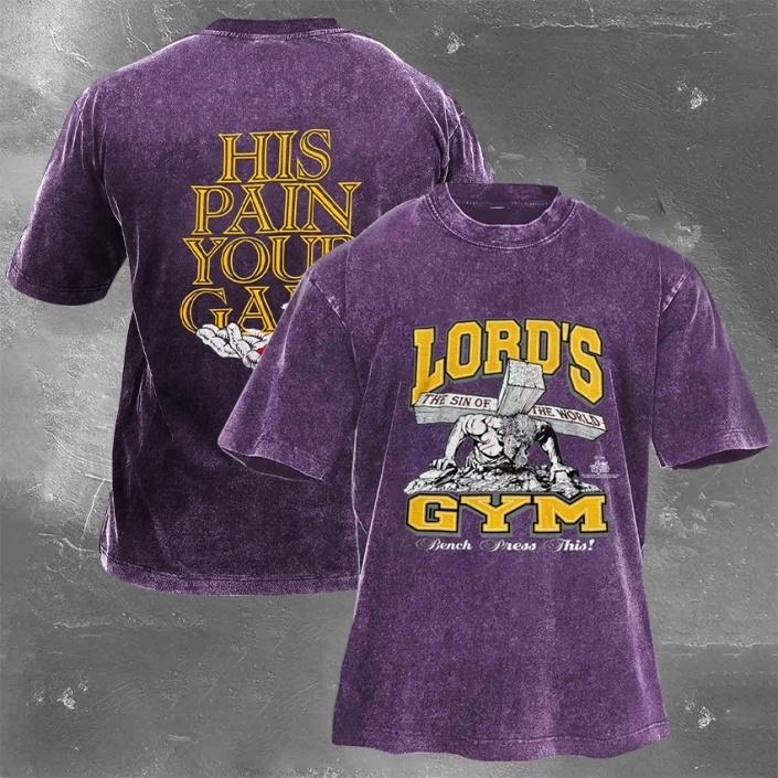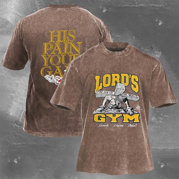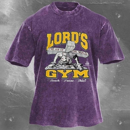 Lord’S Gym Print Washed Retro Casual T-Shirt