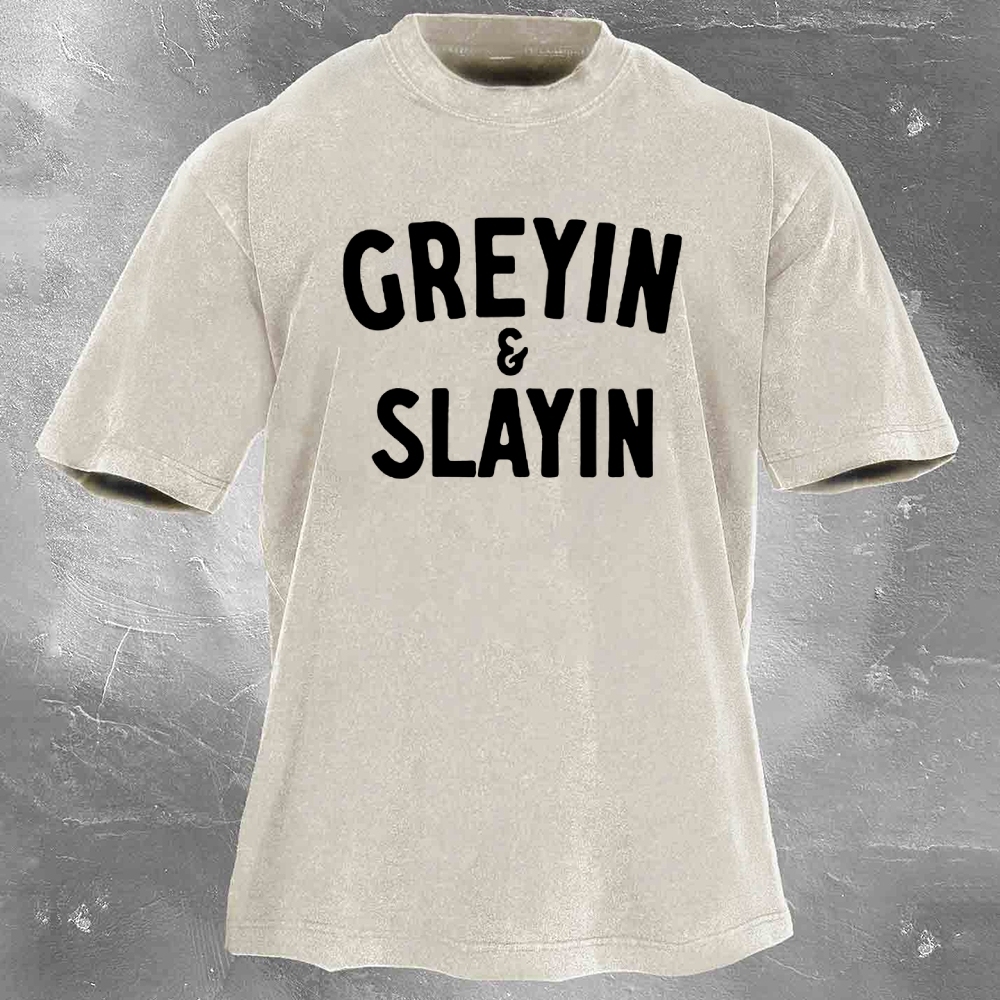Men's Motivational Fitness Washed Retro Casual T-Shirt 09