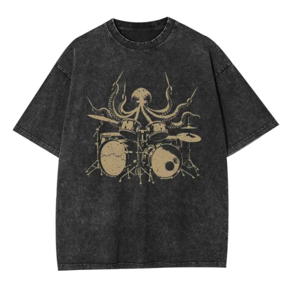 Octopus Drummer Washed T-shirt