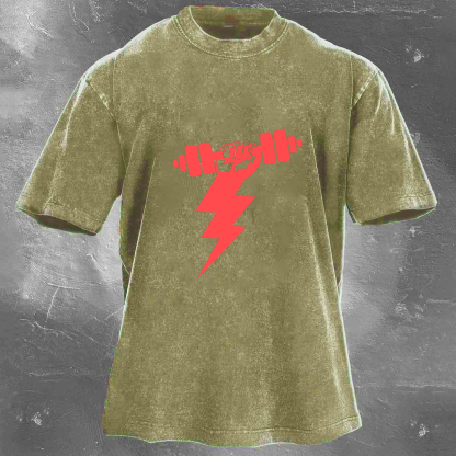 Personalized Lightning Fitness Barbell Pattern Printing Unisex Washed T-shirt