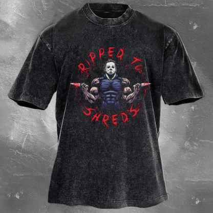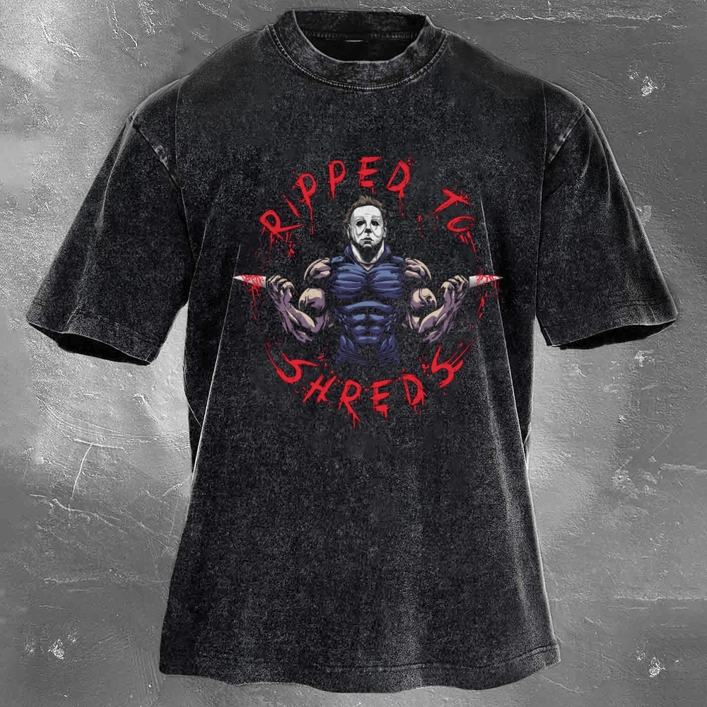 Ripped To Shreds Print Washed Retro Casual T-Shirt