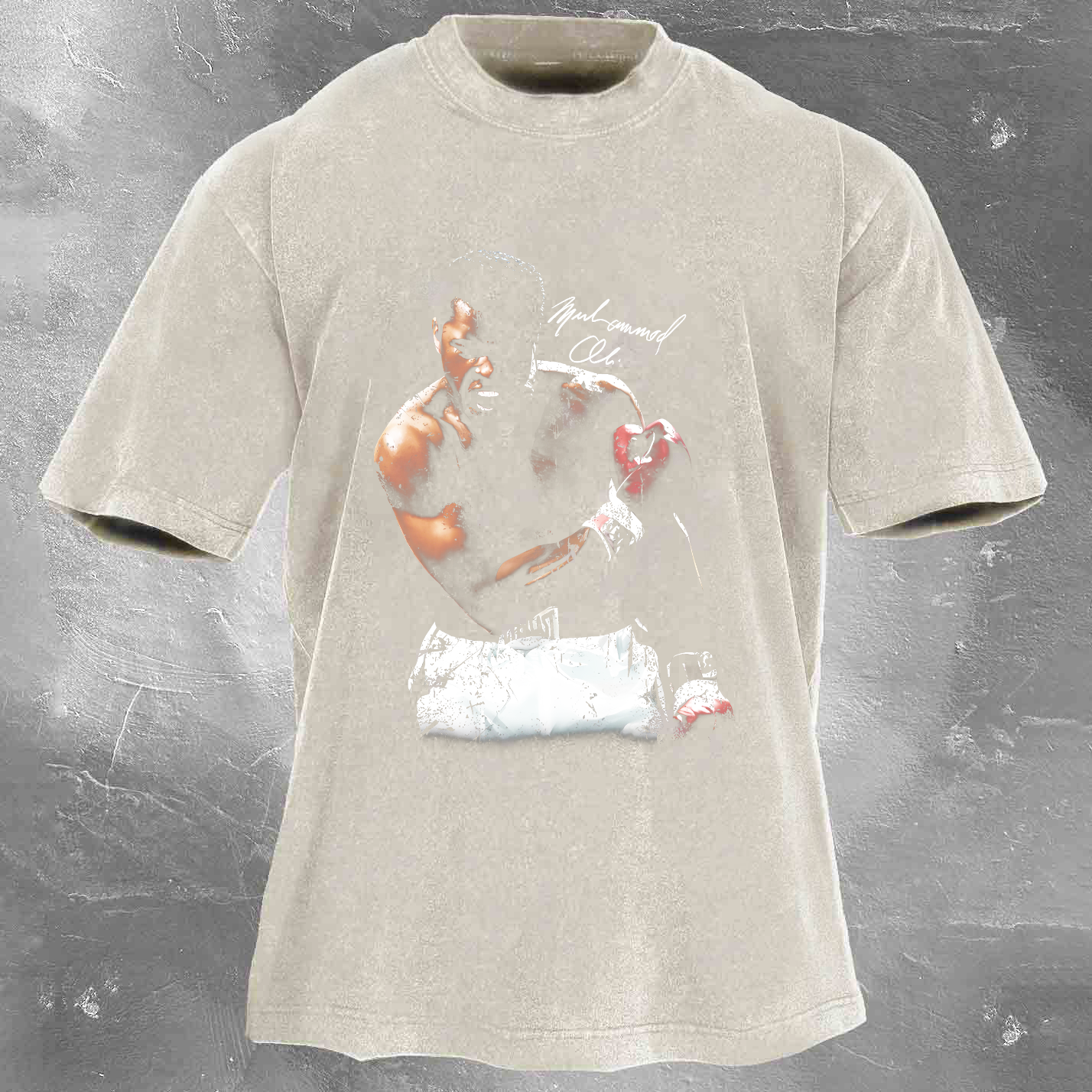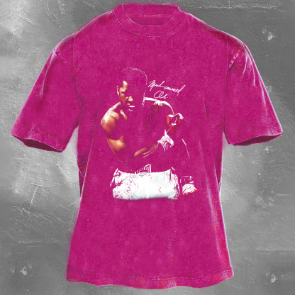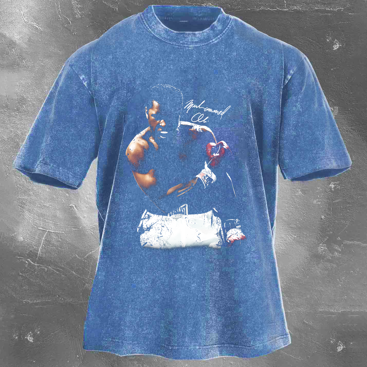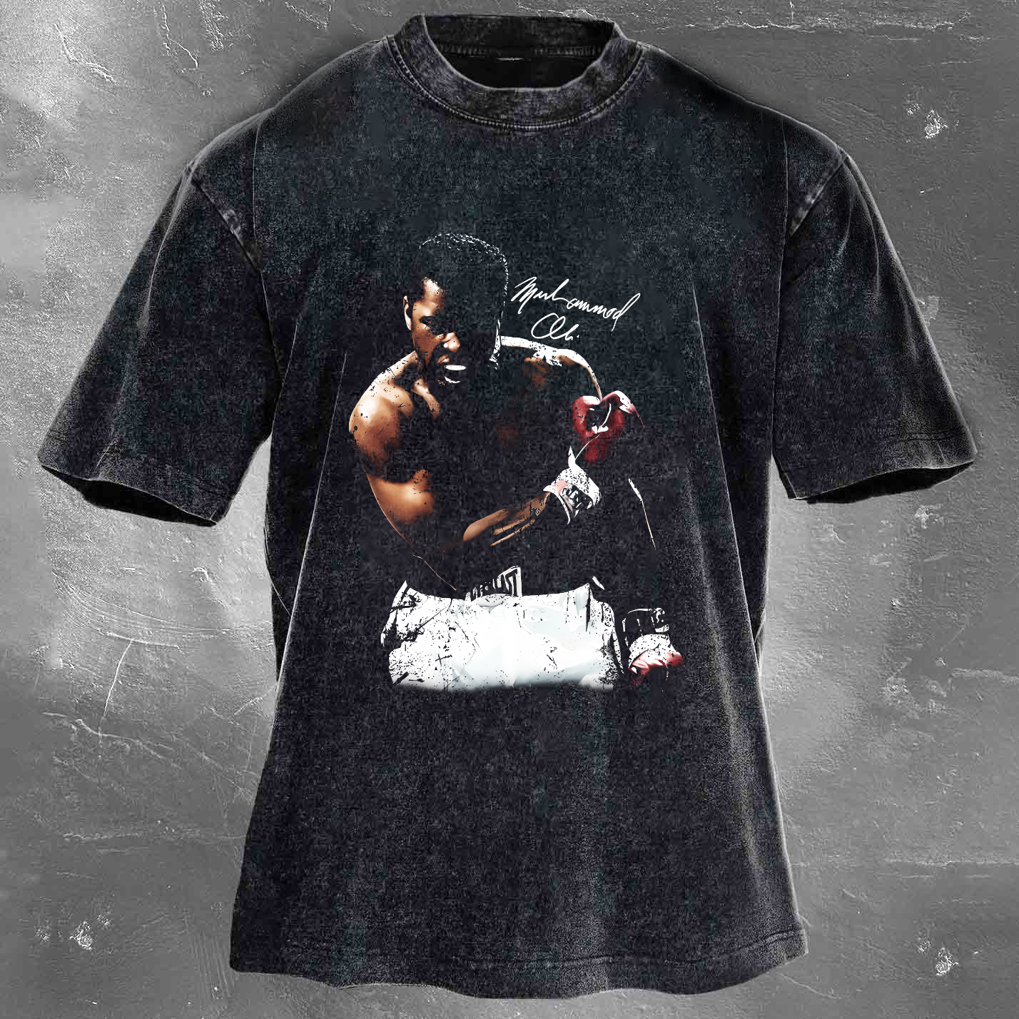 Street Fashion Legend Boxing Champion Pattern Unisex Vintage Washed T-Shirt 106