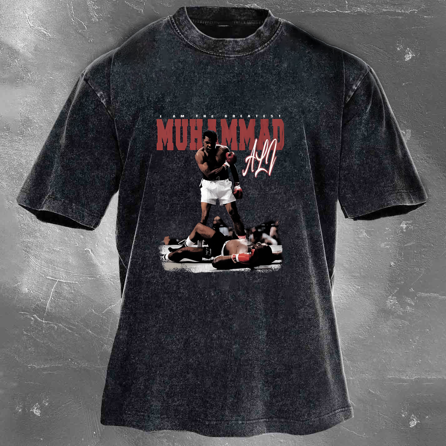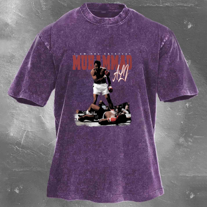 Street Fashion Legend Boxing Champion Pattern Unisex Vintage Washed T-Shirt 110