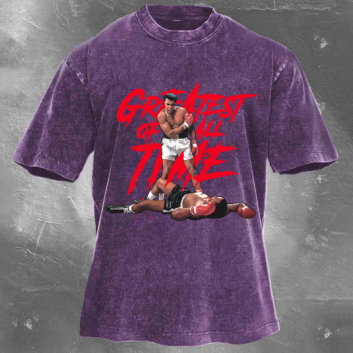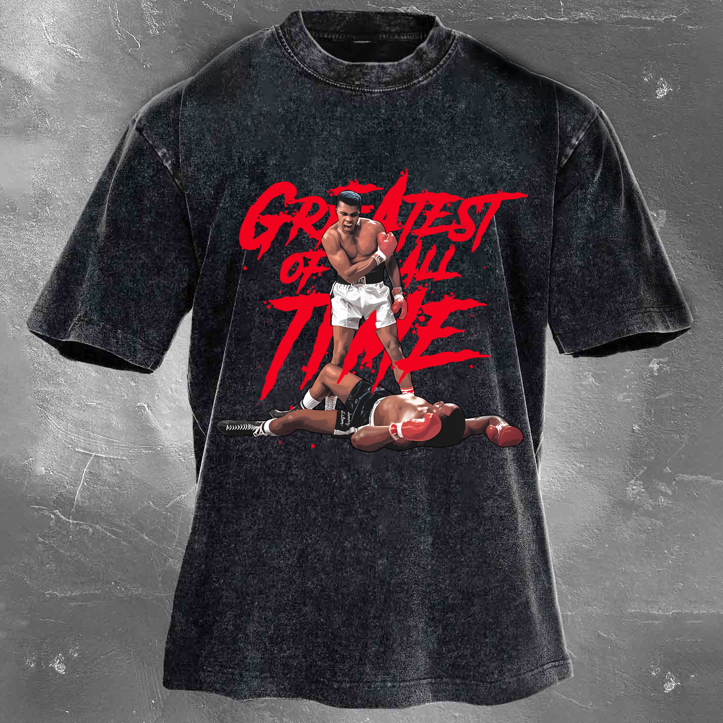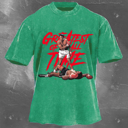Street Fashion Legend Boxing Champion Pattern Unisex Vintage Washed T-Shirt