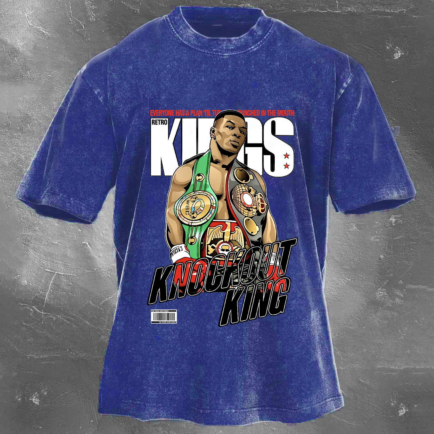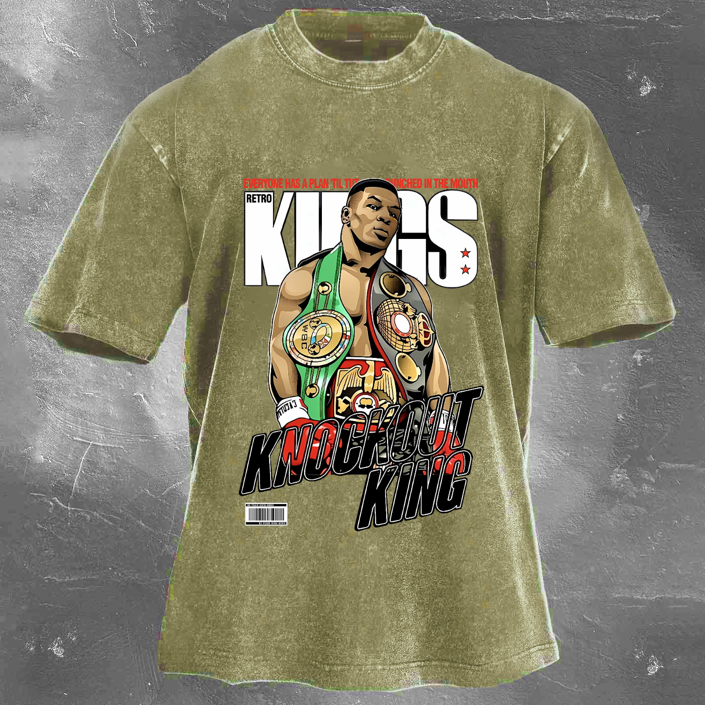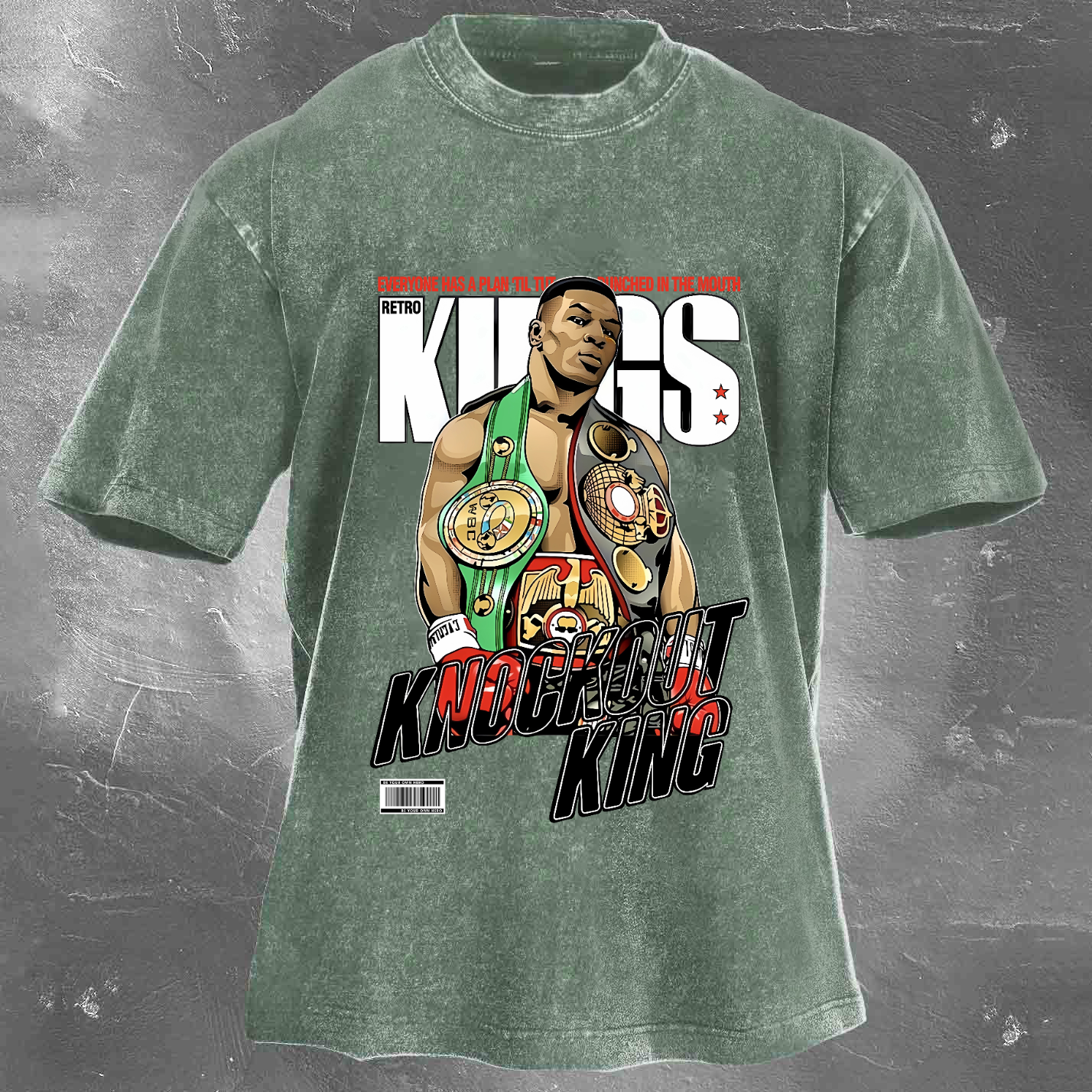 Street Fashion Trend Boxing Champion Pattern Print Unisex Vintage Washed T-Shirt Unisex Vintage Washed T-Shirt
