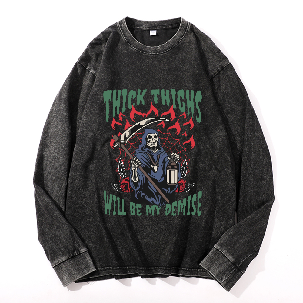 Thick Thighs Will Be My Demise Men's Washed Sweathshirt