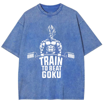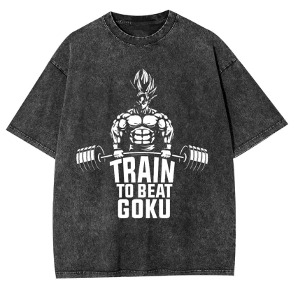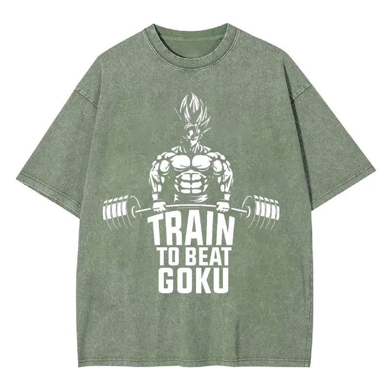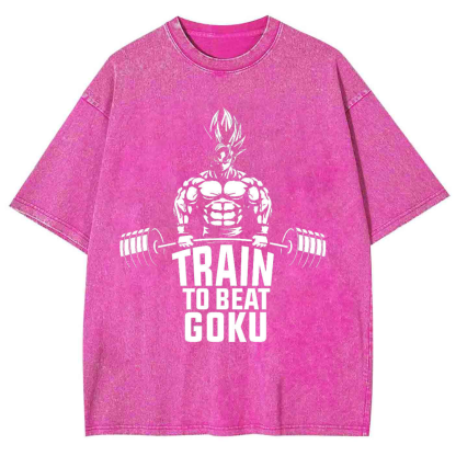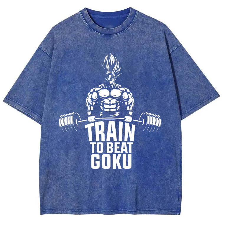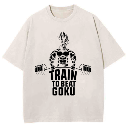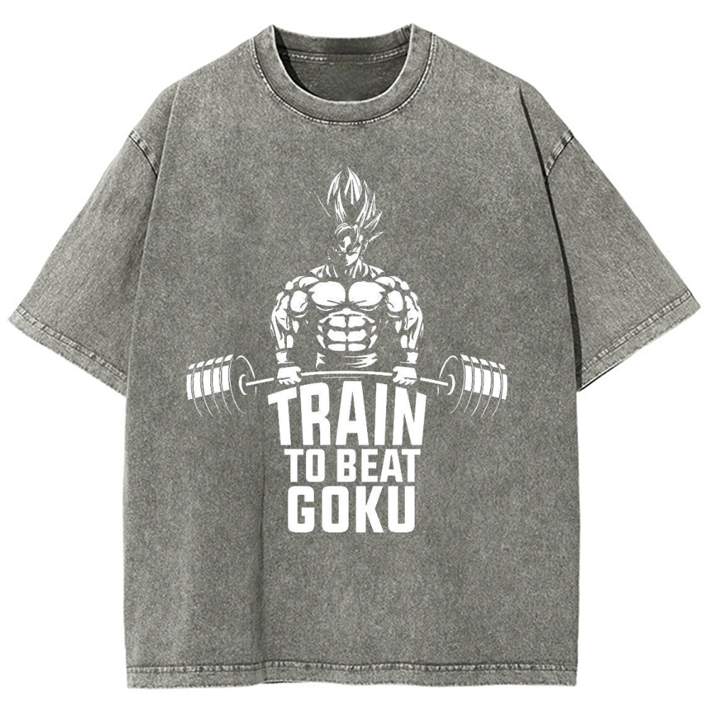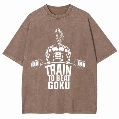 TRAIN TO BEAT GOKU Unisex Washed Crew Neck Short Sleeve T-Shirt