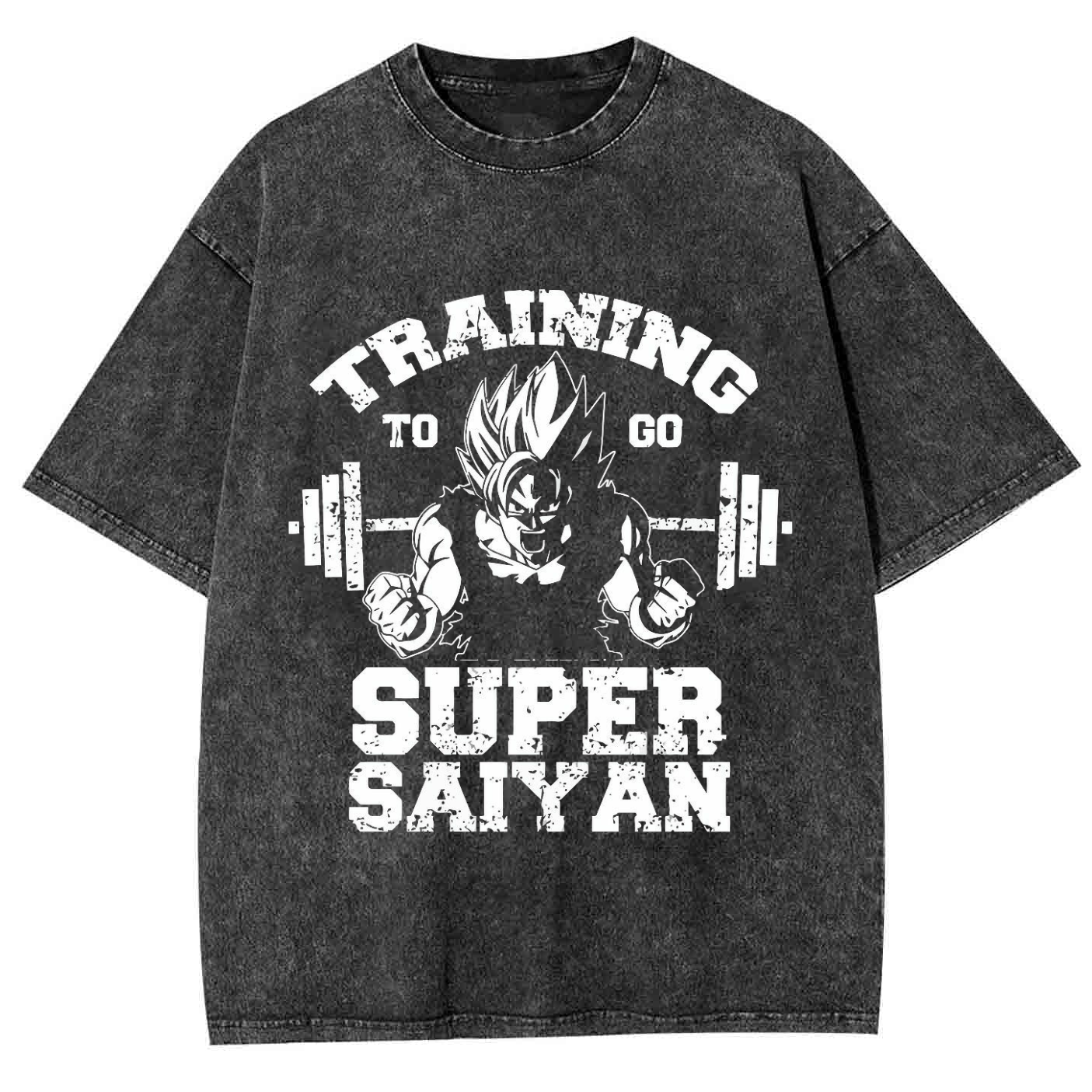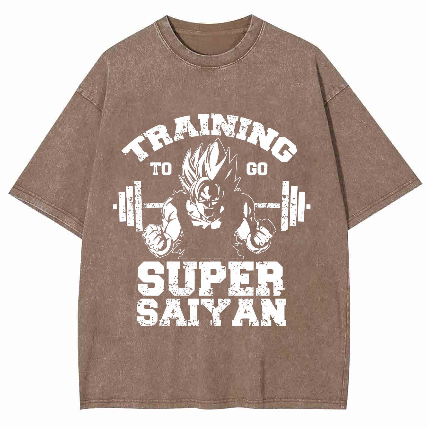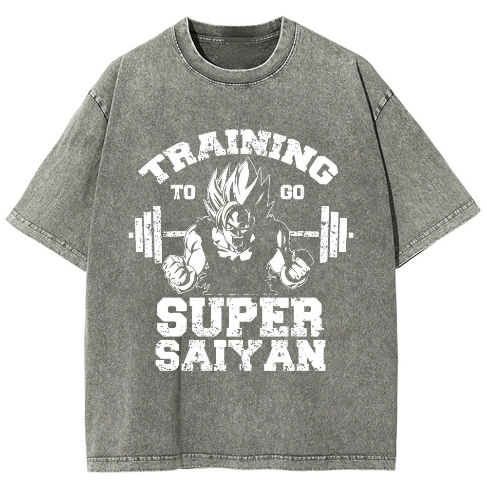TRAINING TO GO SUPER SAIYAN Unisex Washed Crew Neck Short Sleeve T-Shirt