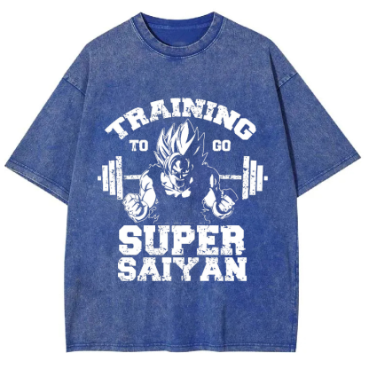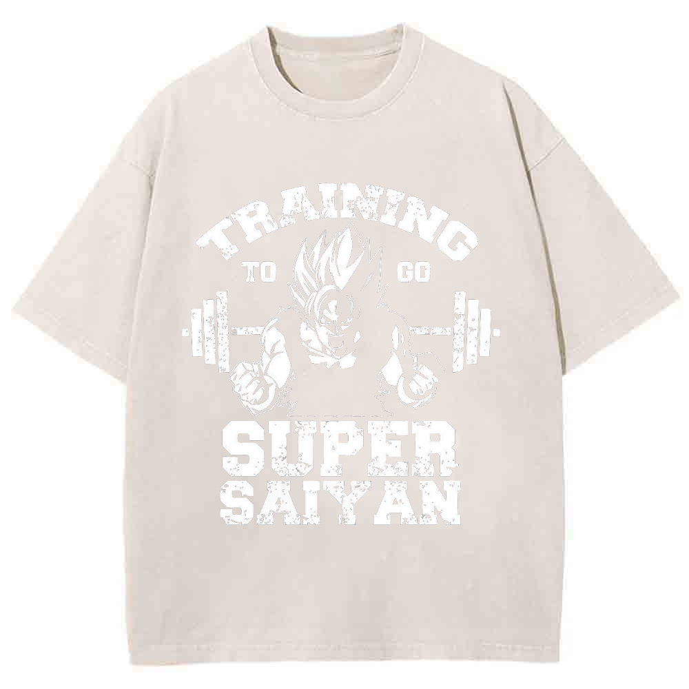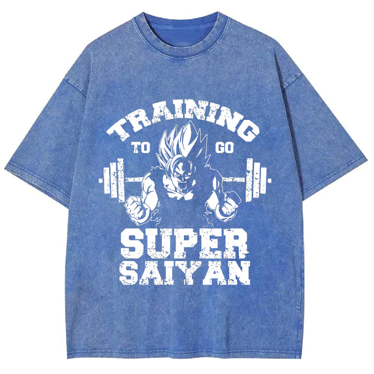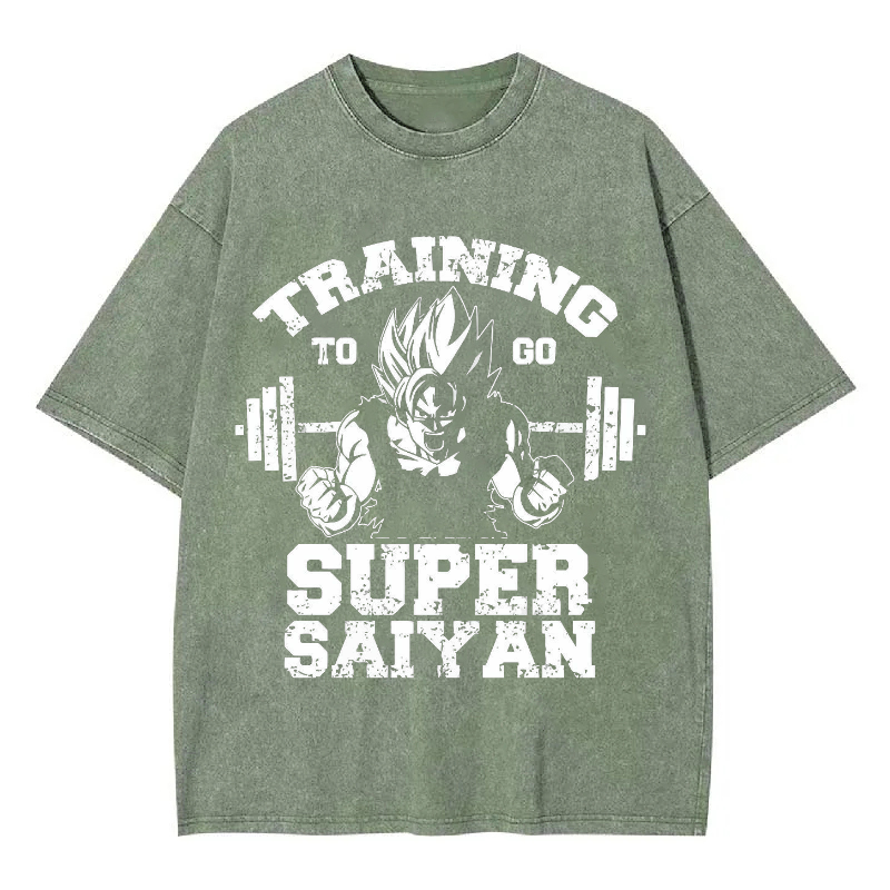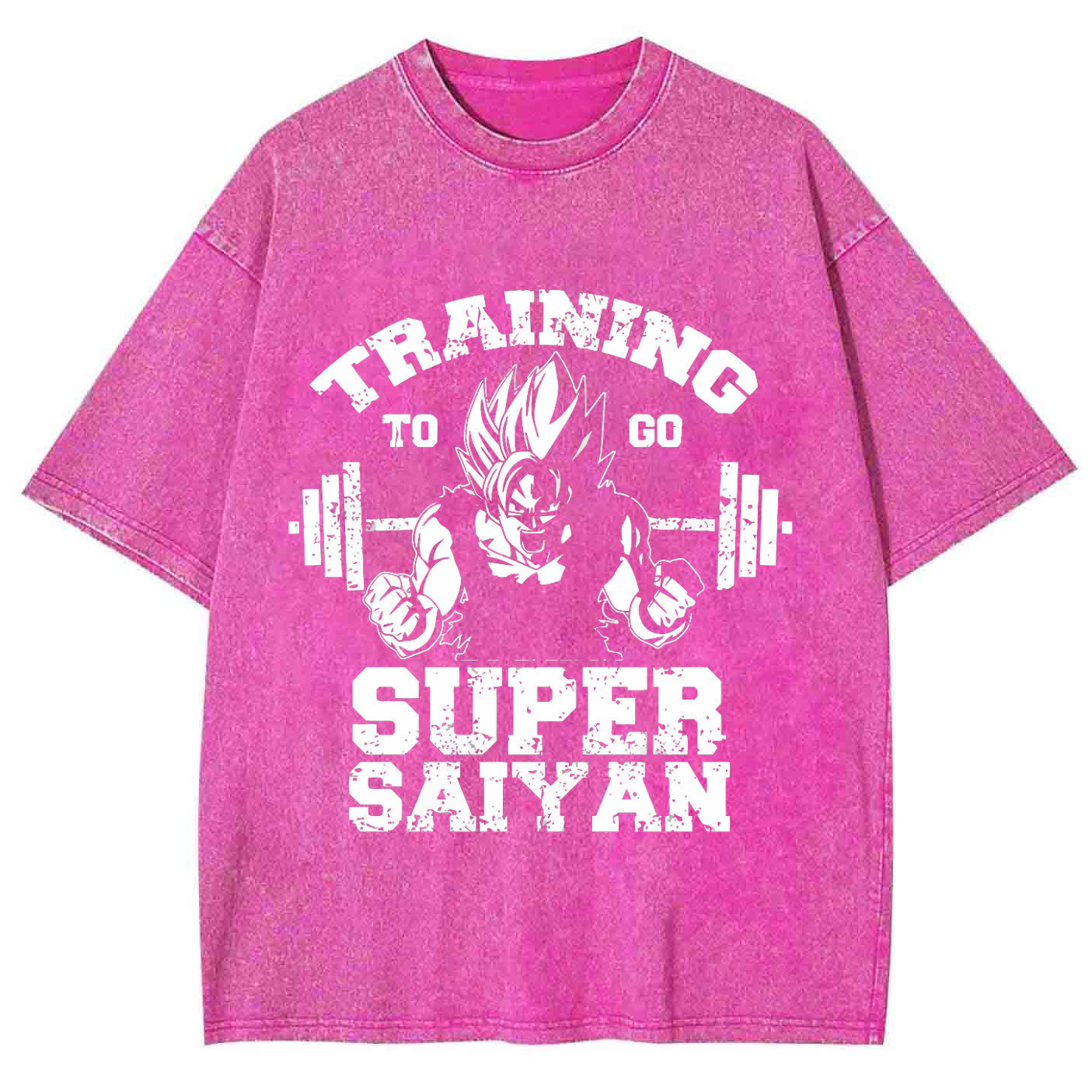 TRAINING TO GO SUPER SAIYAN Unisex Washed Crew Neck Short Sleeve T-Shirt