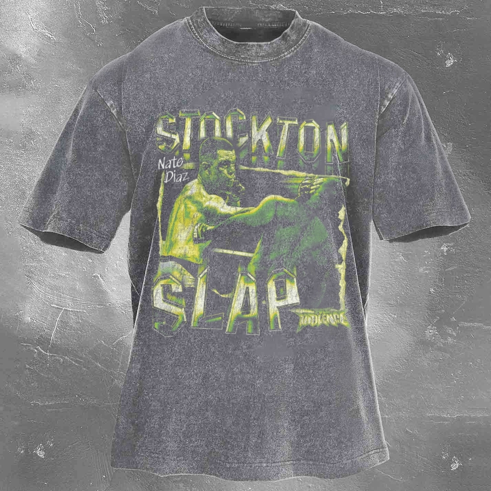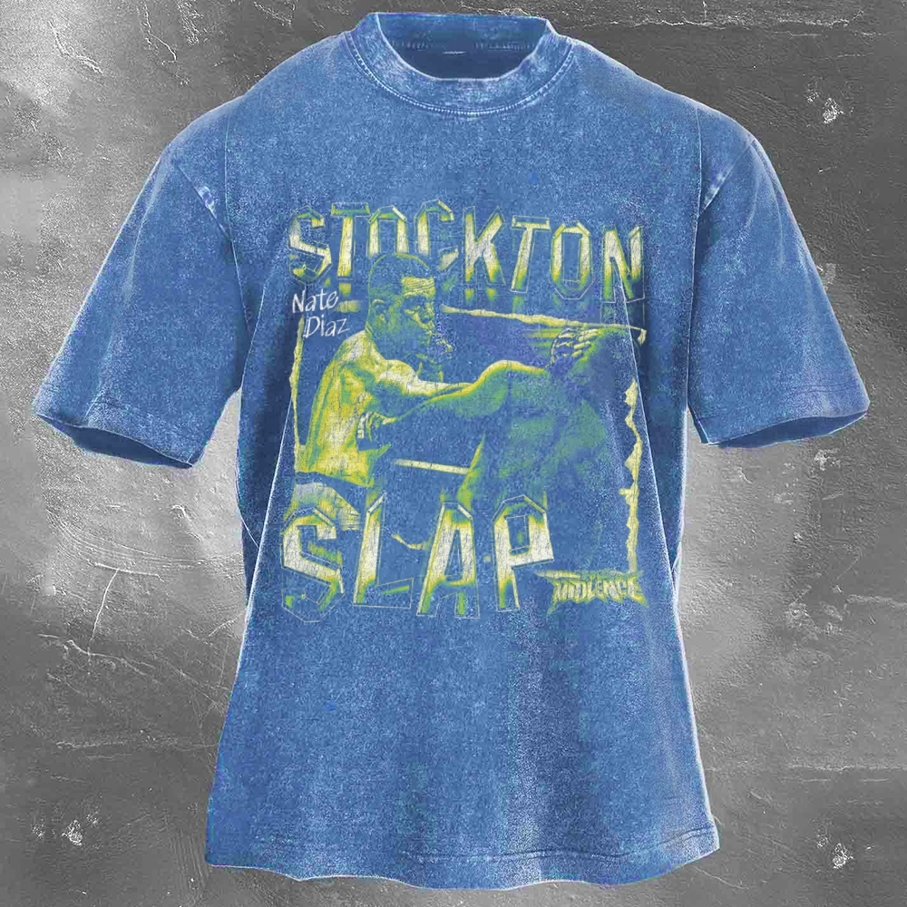 Ultimate Fighting Game Popular Star Print Washed Retro Casual T-Shirt 06