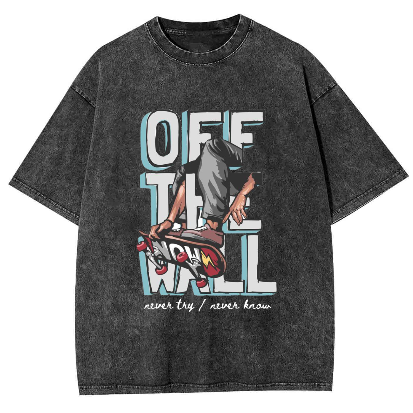 Unisex Skateboard Personalized Graphic Washed Crew Neck Short Sleeve T-Shirt