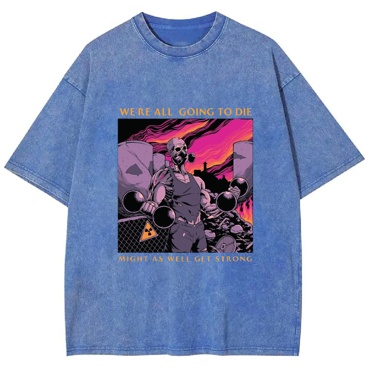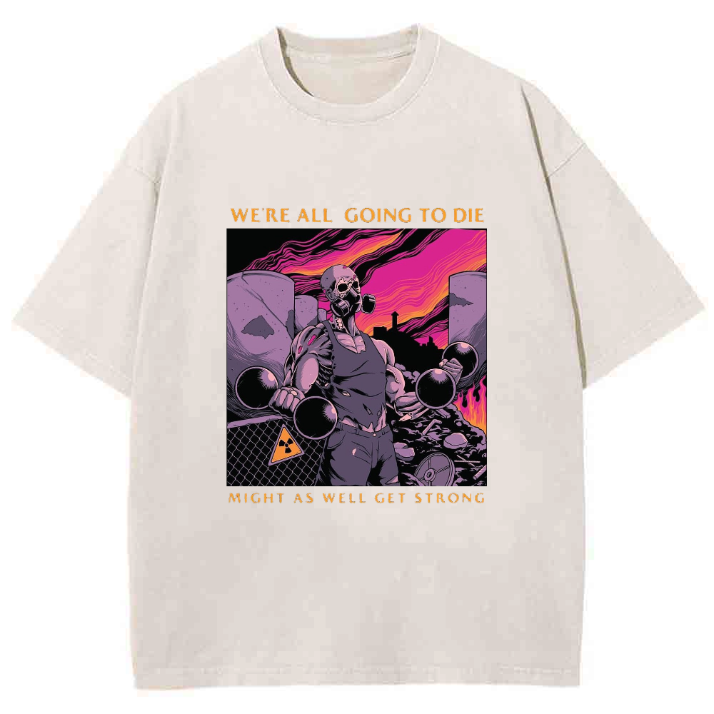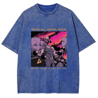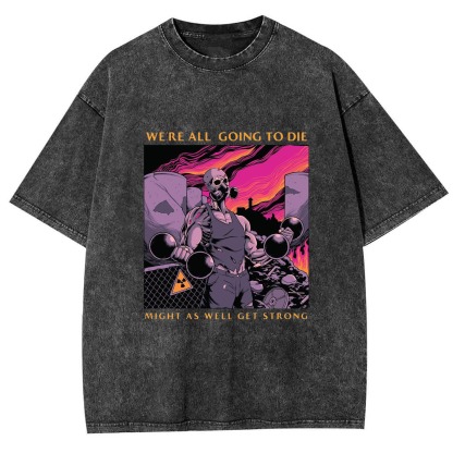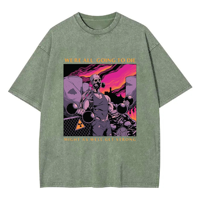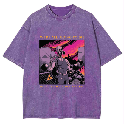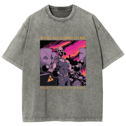 WE'RE ALL GOING TO DIE MIGHT AS WELL GET STRONG Unisex Washed Crew Neck Short Sleeve T-Shirt