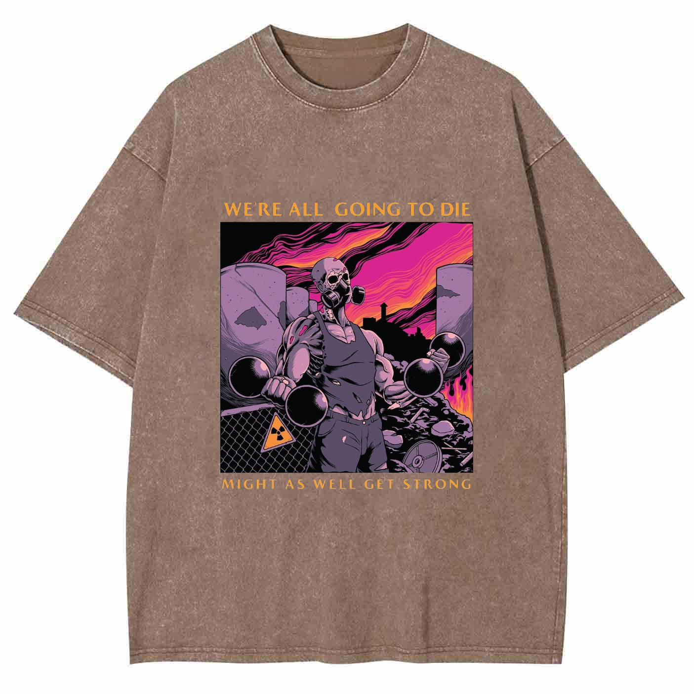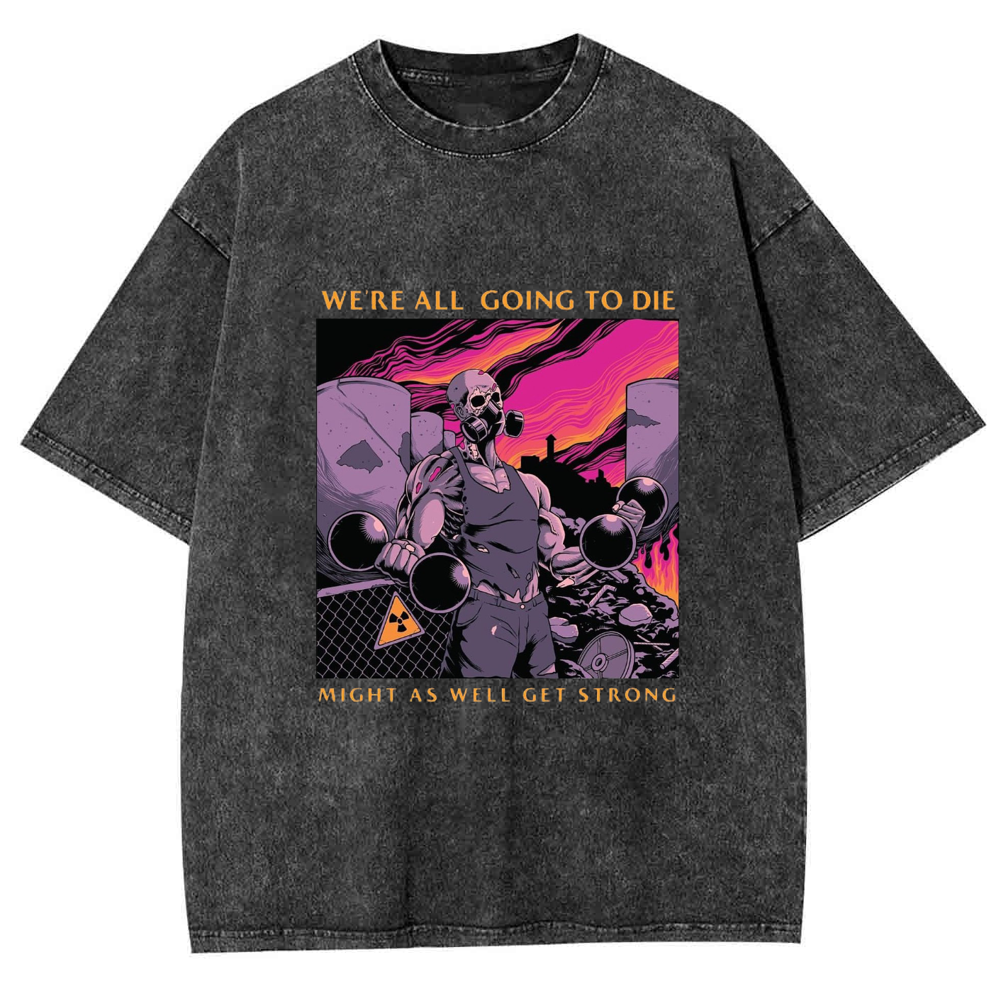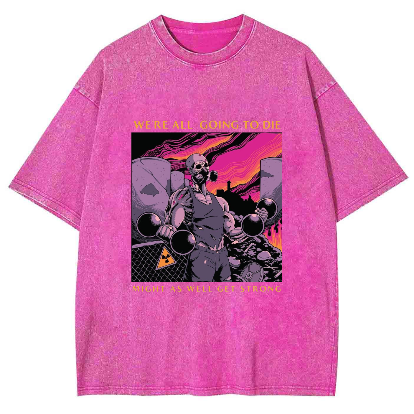 WE'RE ALL GOING TO DIE MIGHT AS WELL GET STRONG Unisex Washed Crew Neck Short Sleeve T-Shirt