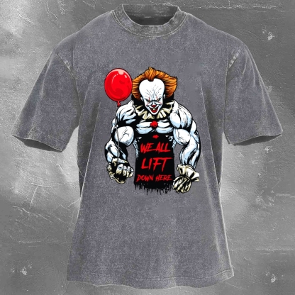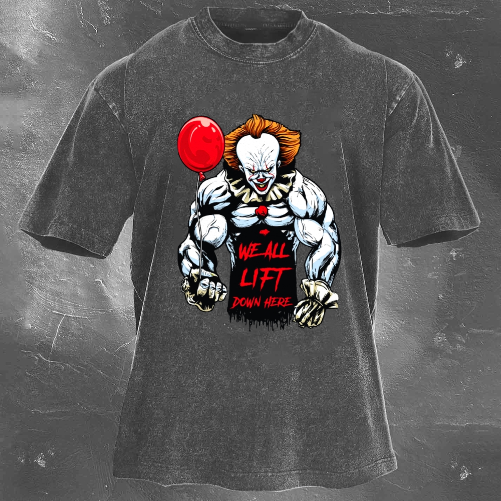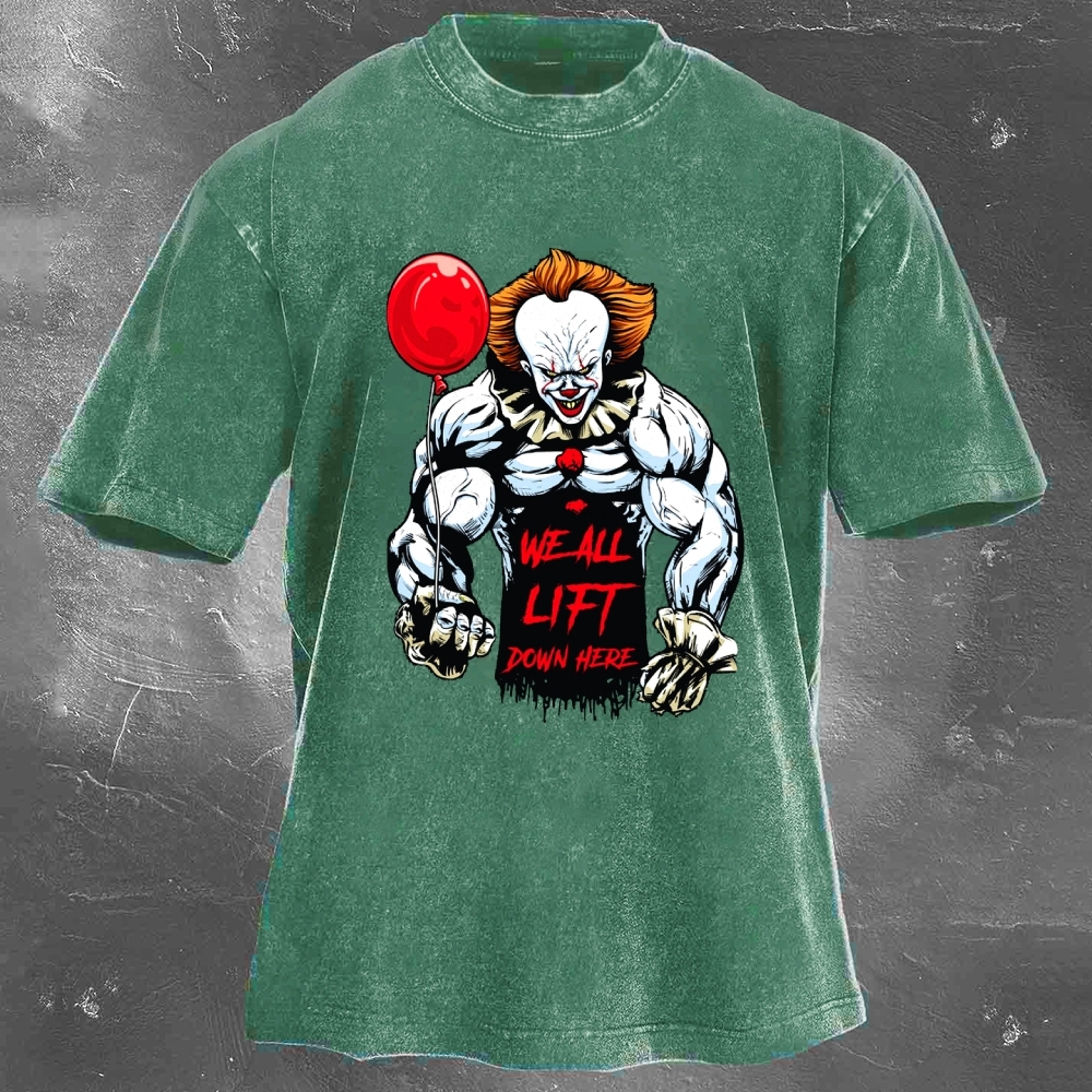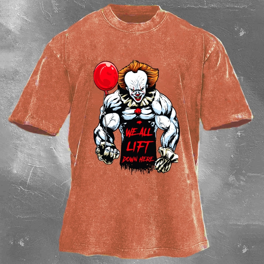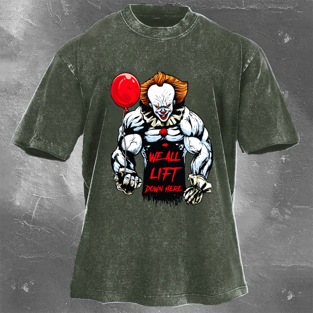 We All Lift Down Here Print Washed Retro Casual T-Shirt