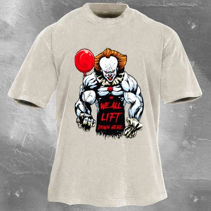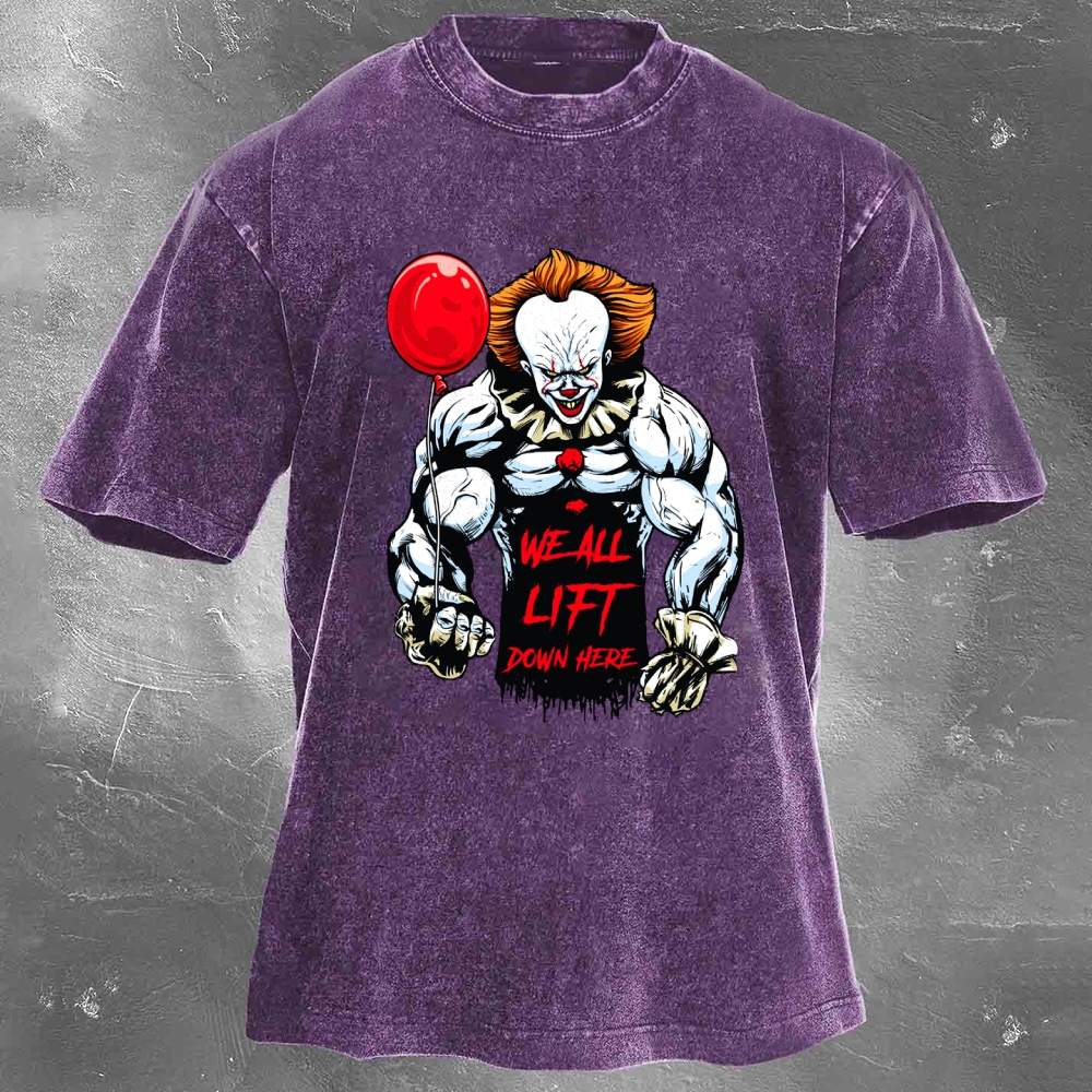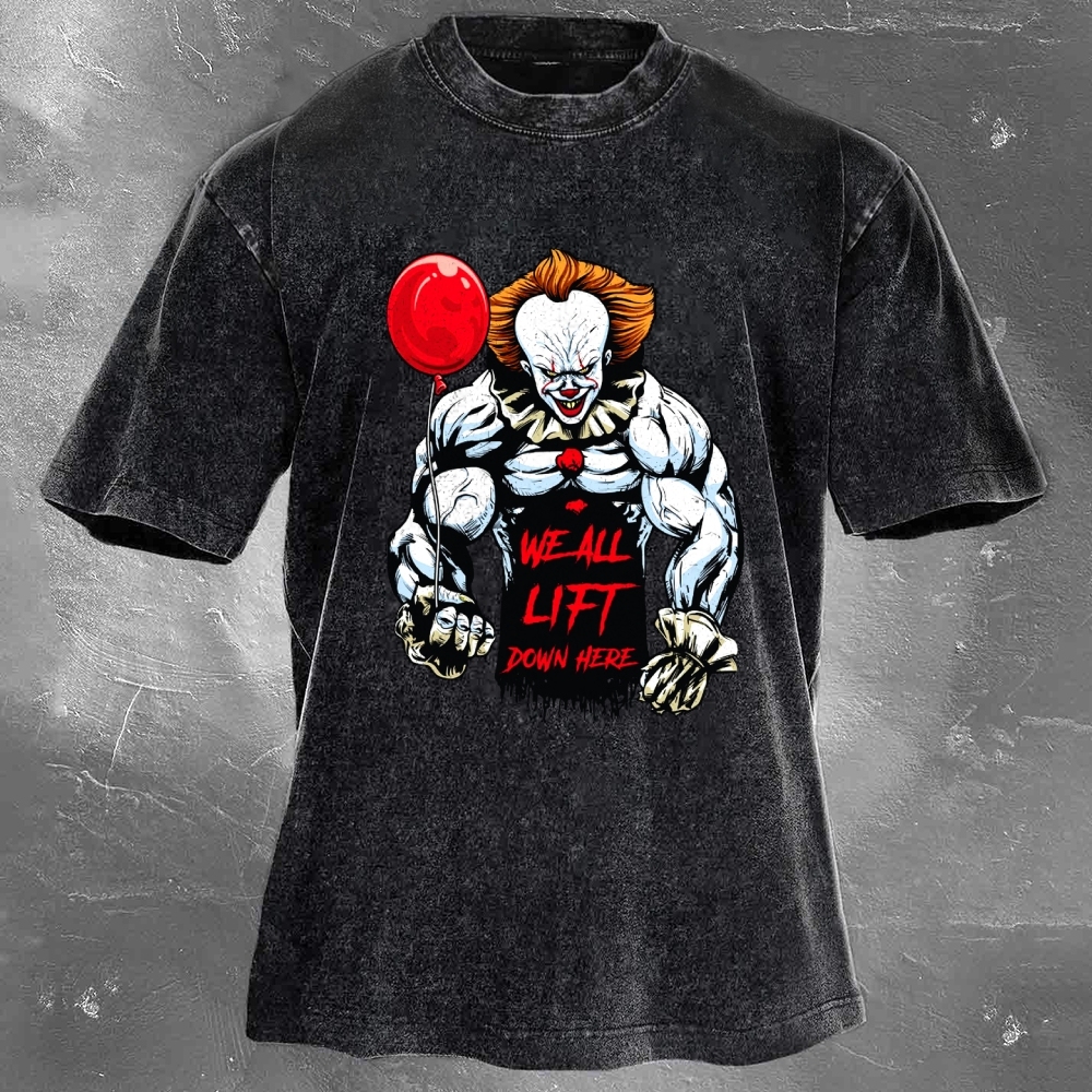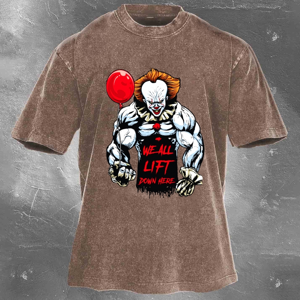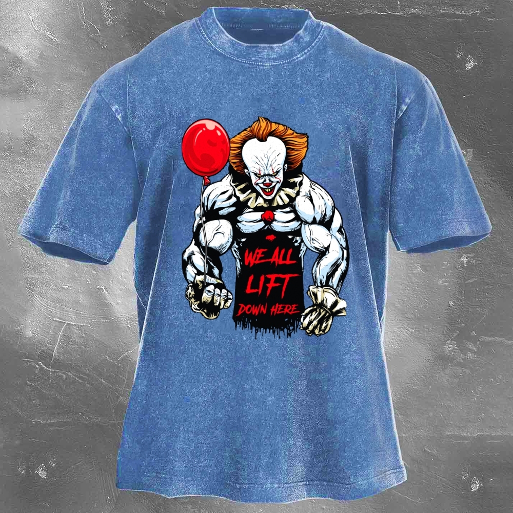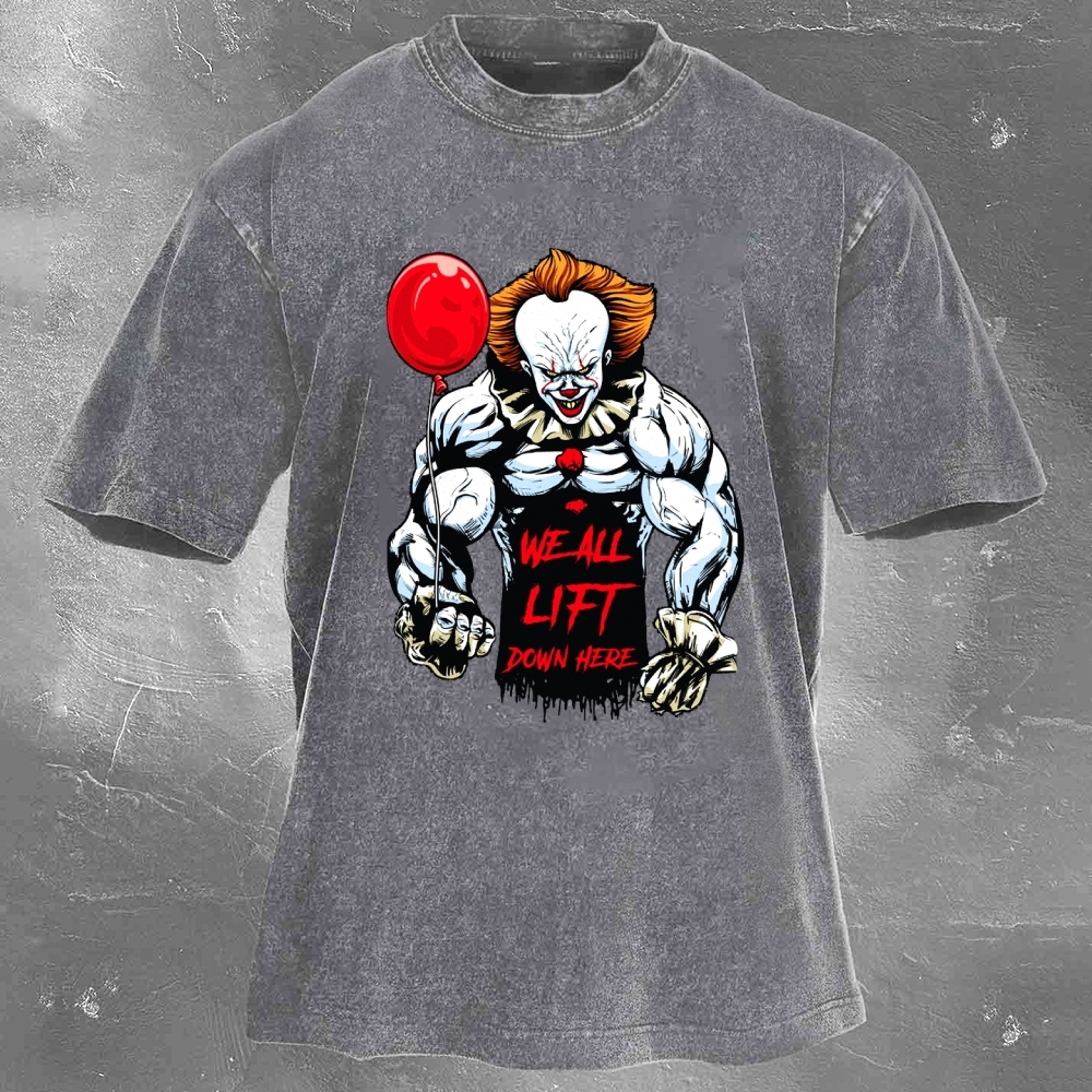 We All Lift Down Here Print Washed Retro Casual T-Shirt